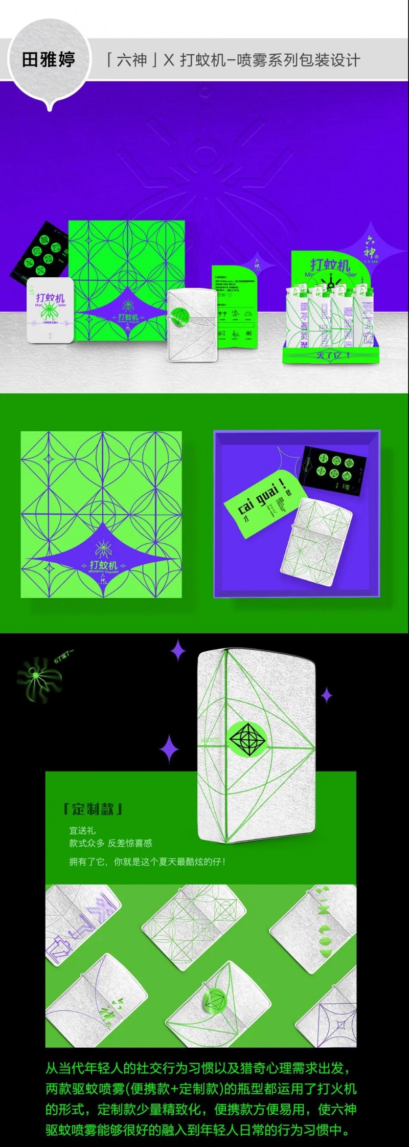 疫情期间,线上教学、沟通的方式存在一定的劣势,交流与理解存在延迟和偏差,为了更好的完成课业,实际上课时间从课堂延长至课下业余时间,教师随时在线答疑解惑,师生讨论交流的时间远远大于以往线下课堂,师生共同克服不利因素,完成了以上的包装设计作品,可以看出同学们灵活多样的设计思路、积极乐观的学习热情和良好的学习状态。作品尚显稚嫩,敬请各位师友指正。